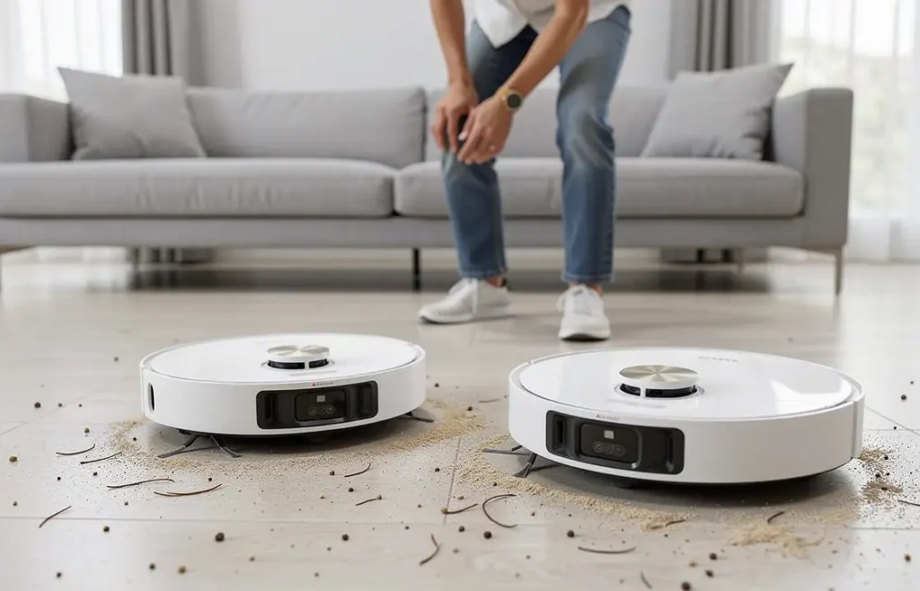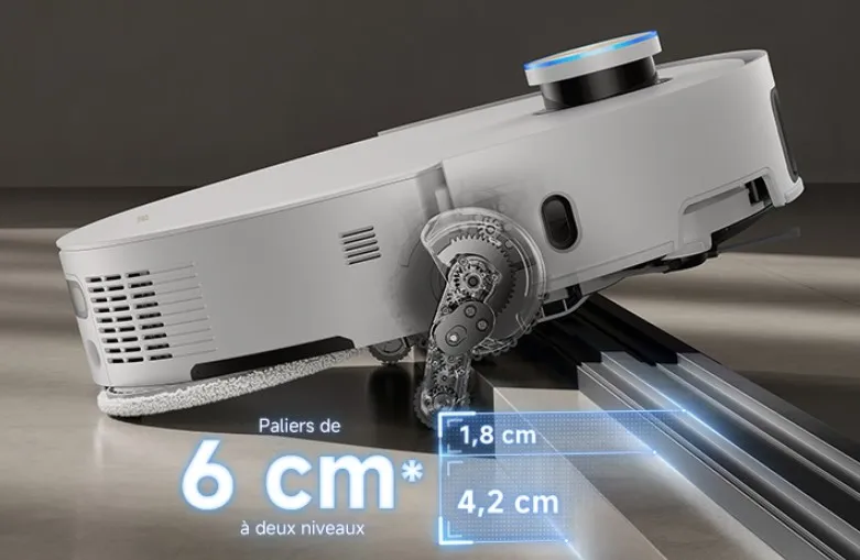 • Överlägsen Hinderhantering: ProLeap-systemet och VersaLift-navigeringen gör att den enkelt passerar över trösklar (upp till 6 cm) och städar under låga möbler.