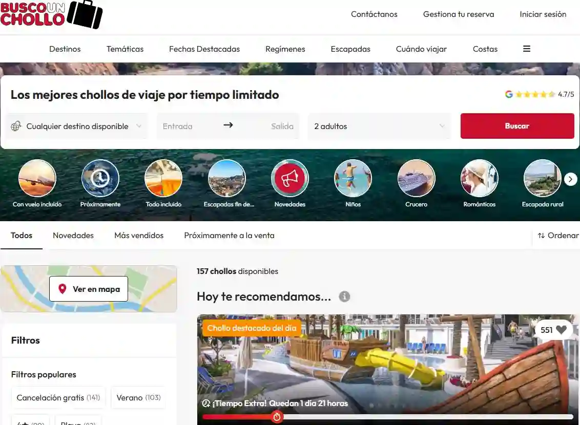 El portal se destaca por su simplicidad y eficacia. No busca marear al usuario con opciones infinitas, sino presentar ofertas directas con precios cerrados y ventajas añadidas que suelen incluir desde desayunos hasta entradas a parques temáticos. Es la herramienta definitiva para quienes priorizan el ahorro inteligente.
